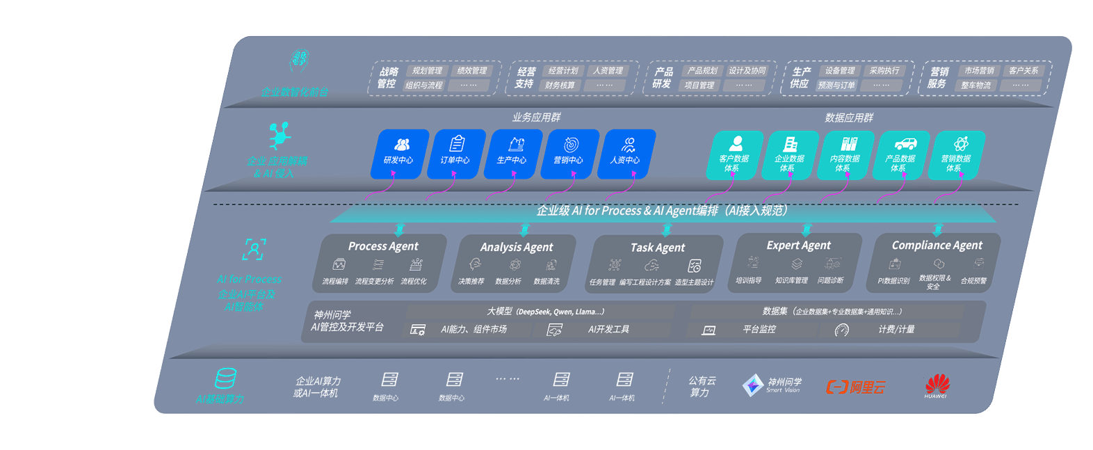 端到端的一站式AI工作空间深度融合了从企业战略规划到日常经营的全流程业务板块,,,定向解决车企内部领域多、、、、部门多、、、链条长、、、、场景碎片化等难题,,支持车企快速构建以AI为核心的生产力写作体系,,实现任务执行与AI能力的无缝集成与交互